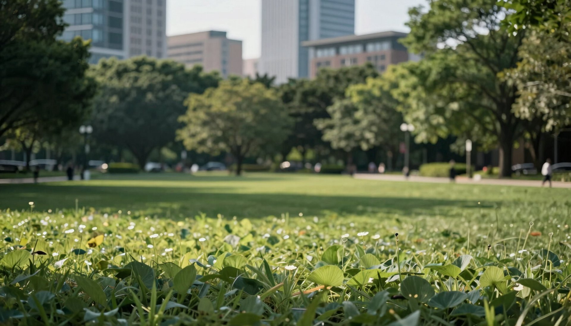 An architectural photography shot of a growing urban business district with modern glass skyscrapers under a clear North American sky, showing financial vitality.